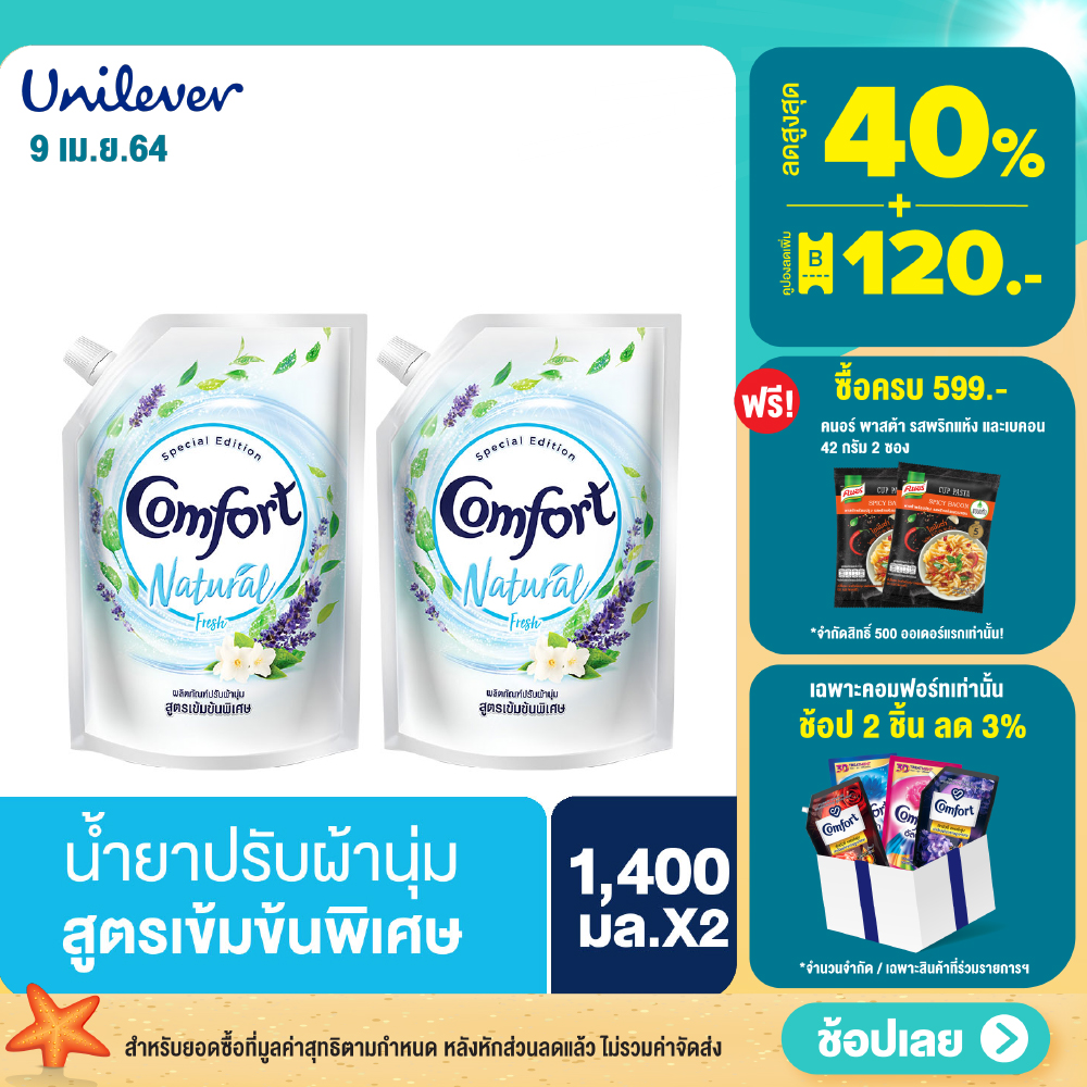 Comfort Natural Fresh Fabric Softener Blue 1300 ml. คอมฟอร์ท เนเชอรัล เฟรช น้ำยาปรับผ้านุ่ม สีฟ้า 1300 มล. X2 unilever เทียบราคา