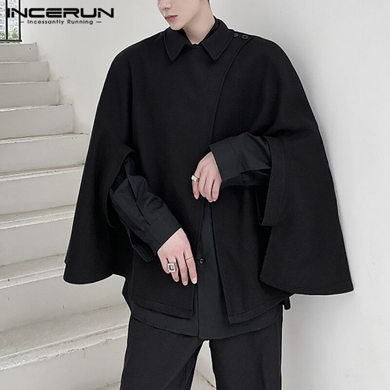 (เกาหลีสไตล์) ได้อย่างสมบูรณ์แบบINCERUN Mens Punkเสื้อคลุมแฟชั่นเสื้อคลุมยาวPonchoหลวมOutwearเสื้อเชิ๊ตสวมหัวสีดำ