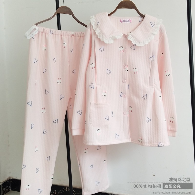 สตรีมีครรภ์ชุดนอนฤดูหนาวเพิ่มความหนาชุดอยู่เดือนหลังคลอดฝ้าย100% ขนาดใหญ่260ปอนด์200สามชั้นบางควิลท์กันหนาวชุดอยู่บ้าน