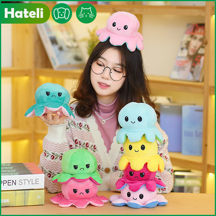 ราคาส่ง ?HATELI? ตุ๊กตาปลาหมึกตุ๊กตาสามารถพลิกตุ๊กตาปลาหมึกด้านพลิกสองด้านตุ๊กตาปลาหมึกตุ๊กตาผ้าขนาดเล็ก Face-เปลี่ยนของขวัญของเล่นสัตว์เลี้ยง