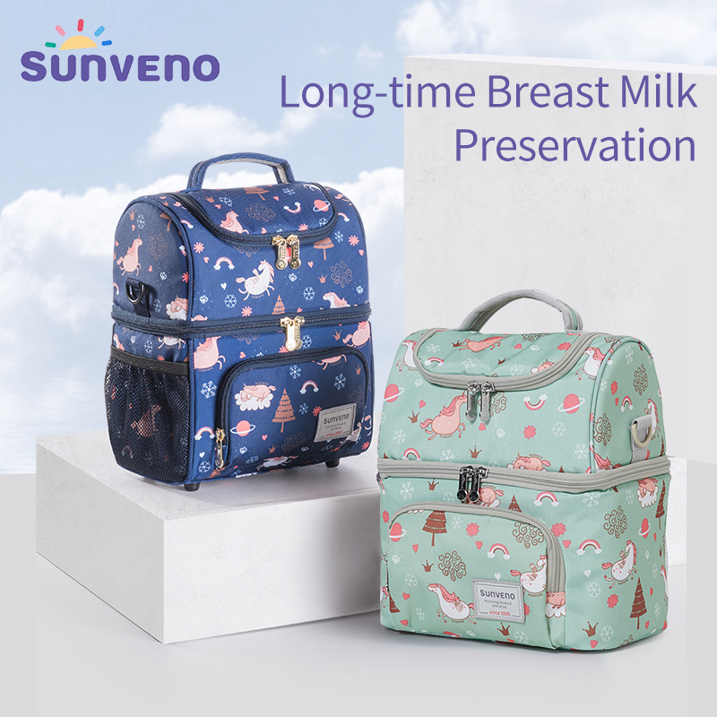 SUNVENOเด็กขวดนมกระเป๋าเป้สะพายหลังให้สดฉนวนกระเป๋าแม่ผ้าอ้อมกระเป๋ามัลติฟังก์ชั่กลางแจ้งความจุขนาดใหญ่ถุงอาหารกลางวัน