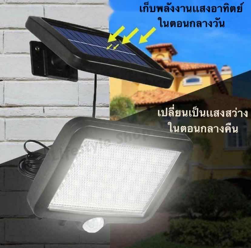 Telecorsa ไฟโซล่าเซลล์ ไฟโซล่าล์สนาม โคมไฟติดผนังพลังงานแสงอาทิตย์ ไฟเซ็นเซอร์ 56 LED ไฟโซล่าเซลล์ ไฟฉุกเฉิน รองรับ 3 โหมด