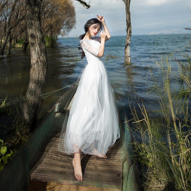 2020 ใหม่สำหรับฤดูร้อนชุดกระโปรงสีขาวหญิงRESTONICกระโปรงเดินชายหาดสไตล์เกาหลีนักเรียนวรรณกรรมเฟรชชี่วันหยุดกระโปรงยาว