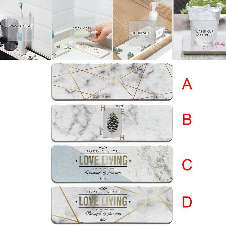 Guo สไตล์นอร์ดิกหินอ่อนแบบไดอะตอมไมต์ลื่นทนการดูดซึมน้ำเสื่อถ้วยสบู่จานจานห้องน้ำที่วางสบู่