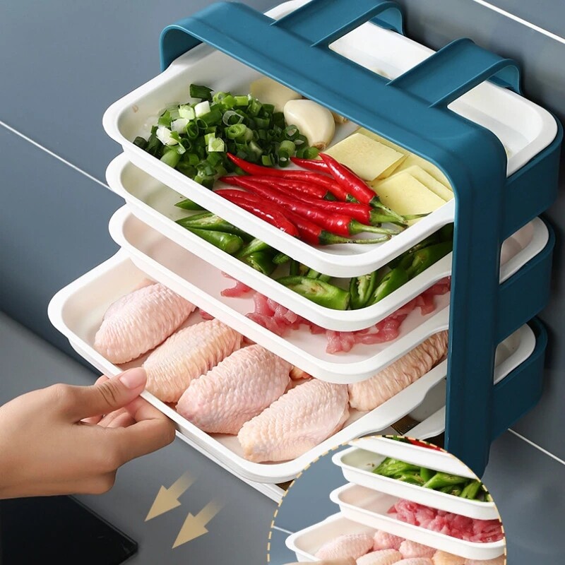 คุณสมบัติ ชื่อ: ถาดเก็บ วัสดุ: พีพี ขนาด: 23*27.1*12.1ซม.; 23*15*12.2ซม สี: ขาว,ขาว,น้ำเงิน บรรจุรวม 1 * ชั้นเก็บ