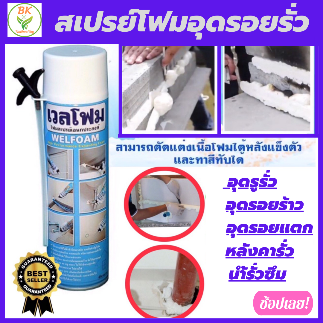 ราคาส่ง ??มีมาตรฐาน??โฟมอุดรอยรั่ว โฟมเอนกประสงค์ WELFOAM เวลโฟม ยึดเกาะใด้ดี ทุกพื้นผิว พร้อมหัวฉีด ใช้งานง่าย (สินค้าพร้อมส่ง)