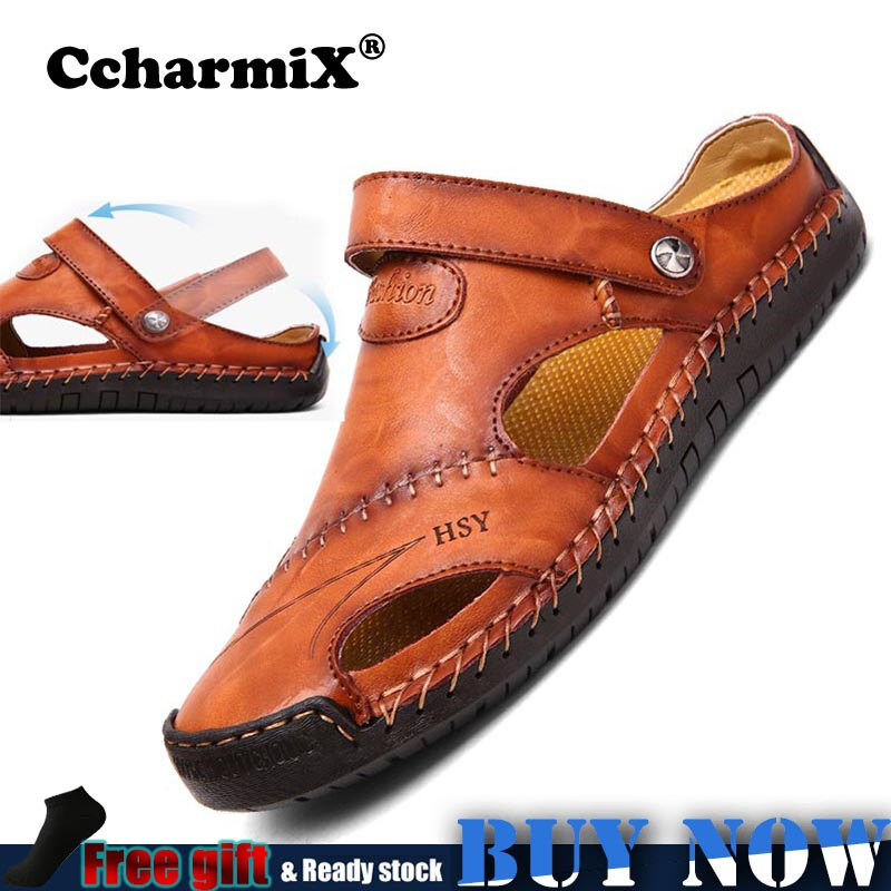 เชคราคา CcharmiXหนังแท้ผู้ชายรองเท้าแตะฤดูร้อนนุ่มกลางแจ้งเดินชายหาดรองเท้าแฮนด์เมดคลาสสิกรองเท้าแตะลำลองที่มีคุณภาพสูงรองเท้าแตะรองเท้าแตะขนาดใหญ่ 48