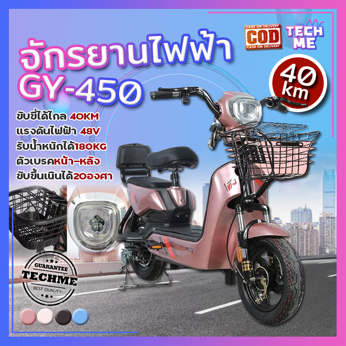 จักรยานไฟฟ้า รถไฟฟ้า รุ่น GY-450 จักรยาน 48V รถไฟฟ้าผู้ใหญ่ วิ่งได้ 30-40KM electric bike สกูตเตอร์ไฟฟ้า สกูตเตอร์ TECHME