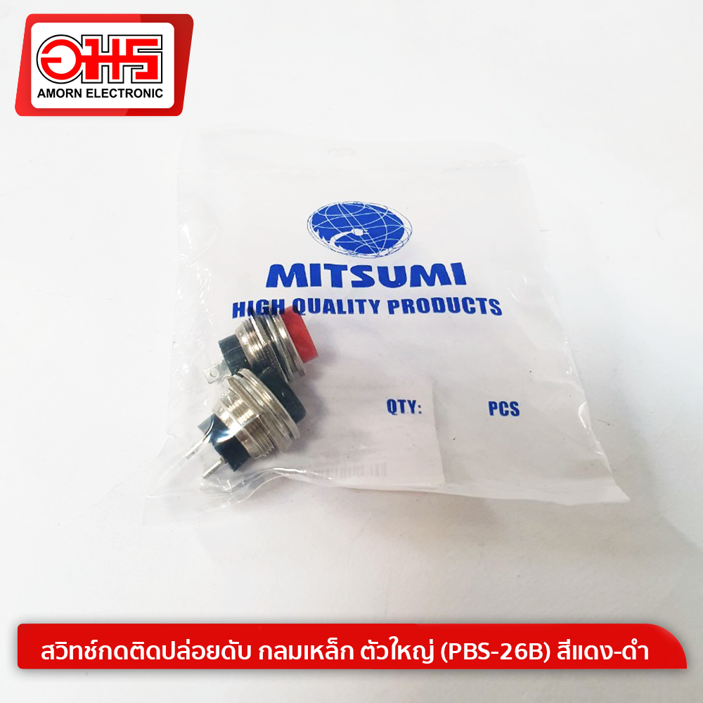 สวิทช์กดติดปล่อยดับ กลมเหล็ก ตัวใหญ่ (PBS-26B) ถุงนึงมี2ชิ้น สีแดง-ดำ สวิทช์ สวิทช์ปุ่มกด สวิทช์ไฟ อมรออนไลน์ AmornOnline