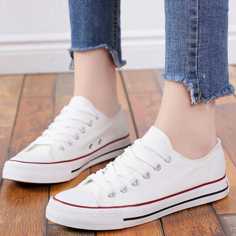beauty shoes เวอร์ชั่นเกาหลีของรองเท้าผ้าใบนักเรียนหญิงลูกไม้รองเท้าแบนรองเท้าลำลองรองเท้าป่าย้อนยุครองเท้าผ้าใบสีขาวสีดำ