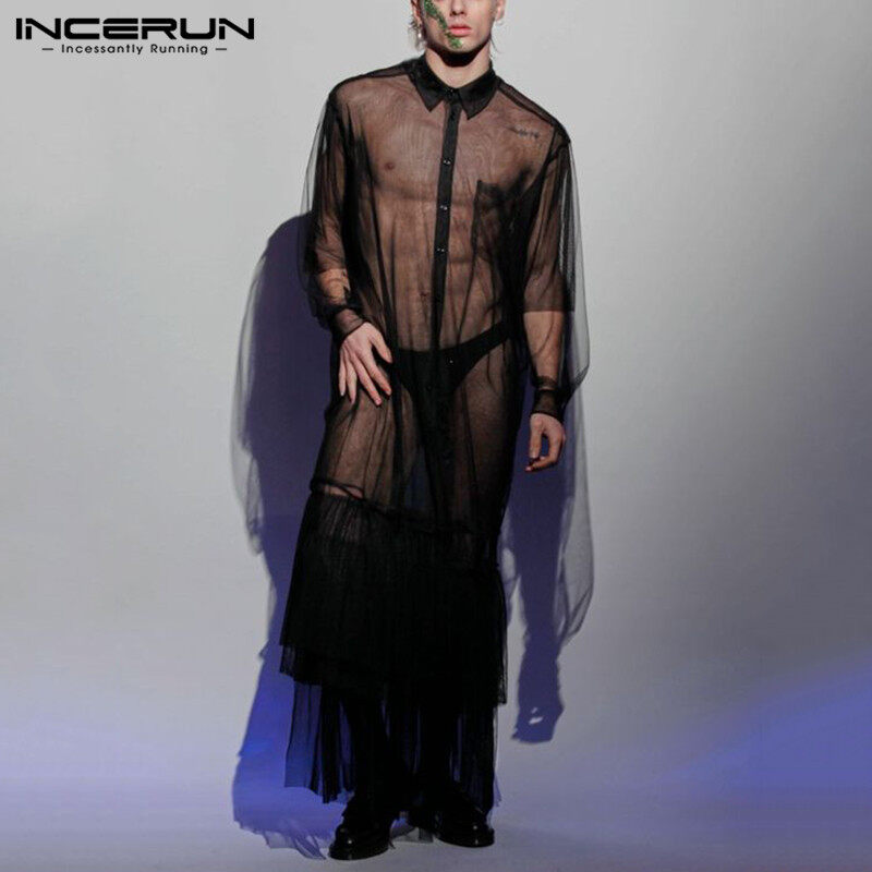 (Western Style) INCERUNดูผ่านผู้ชายPunkแฟชั่นTเสื้อCapeเสื้อถักKaftanเสื้อแจ็คเก็ตโกธิคTop